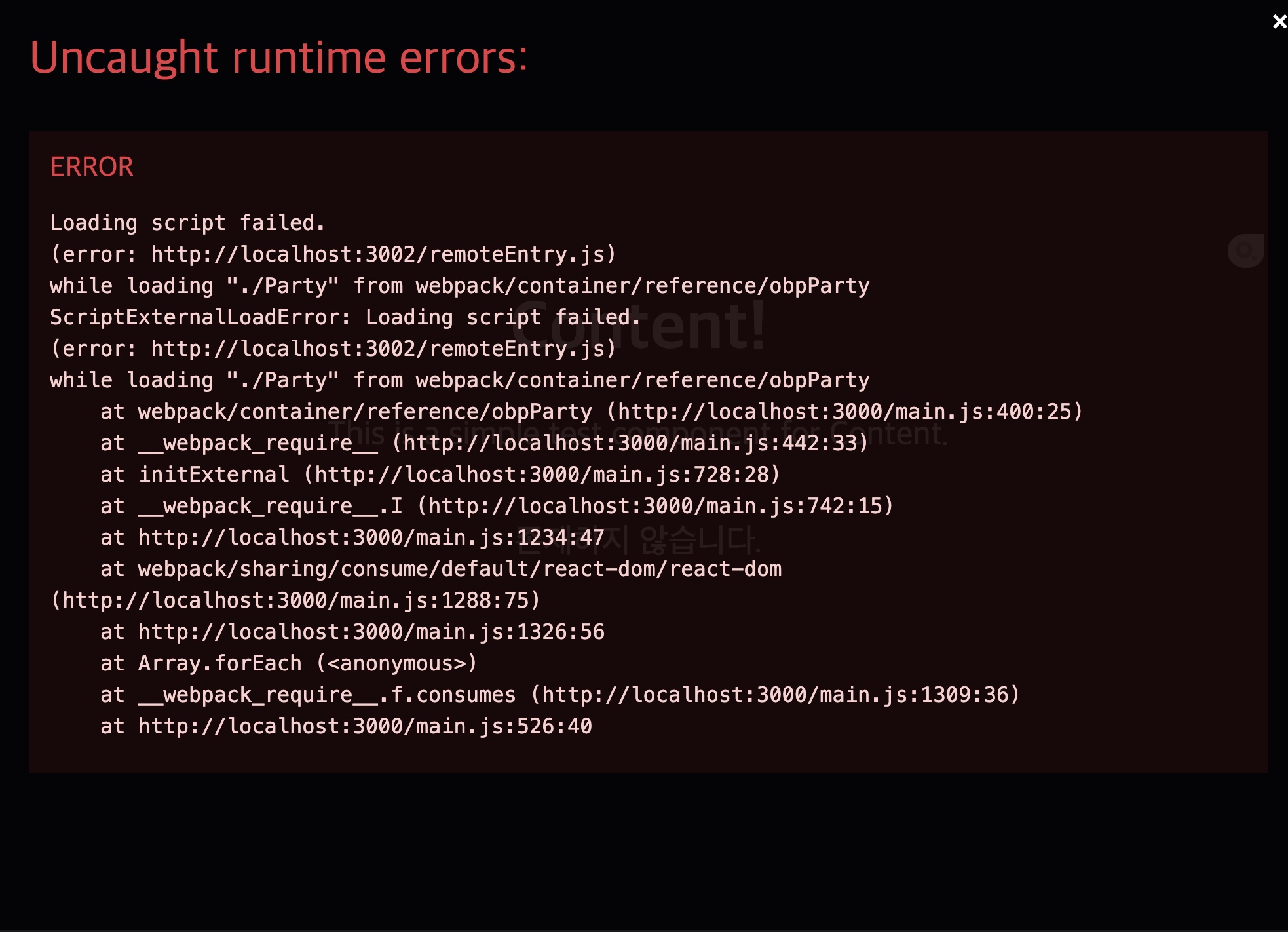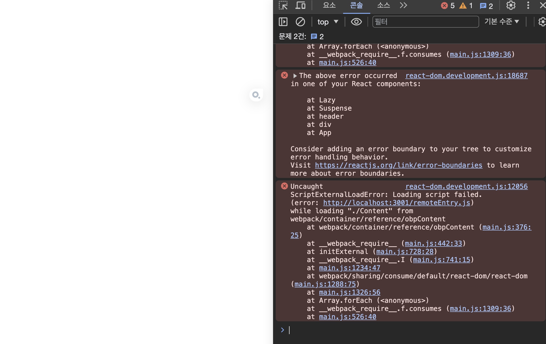 원래는 이런 에러가 났지만, ErrorBoundary로 감싸주었기 때문에 B프로젝트 영역에는 '존재하지 않습니다'라는 글씨로 나타나고 있다.