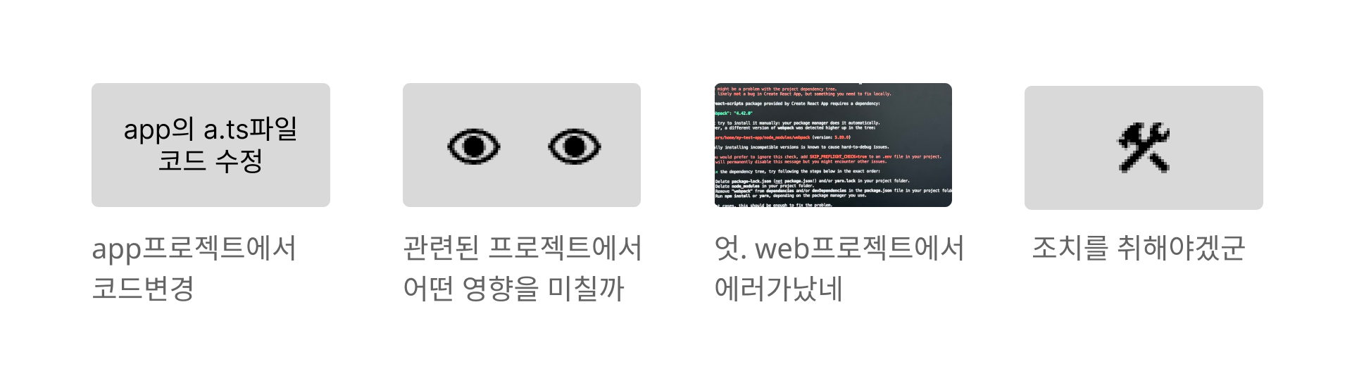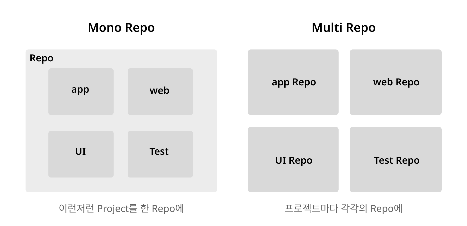 그러니깐.. 처음 개발프로젝트를 생성하는 사람이 ‘나는 모노레포 방식으로 개발할거야’라던지 ‘난 멀티레포로 개발하겠어’라고 정해두진 않는단 말이다. 모르니깐.