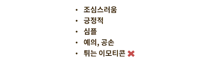 친구에게 쓰는 이모티콘과 비교했을때, 업무를 보는관계고 예의를 지켜야한다.