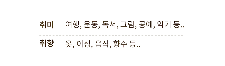 취미활동이라면 그 취미활동을 할 때 내가 어떤 생각을 많이 했는지 같은 취미를 갖고 있는 사람들과