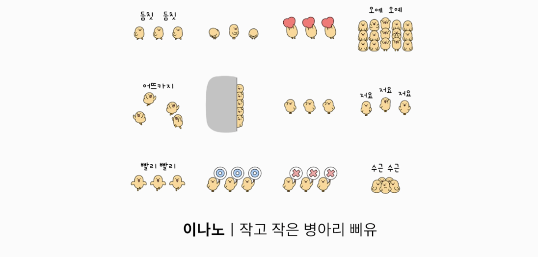 아마 크기가 작기 때문에 한마리만 등장하면 너무 화면이 비어보일 수 있기 때문이다.