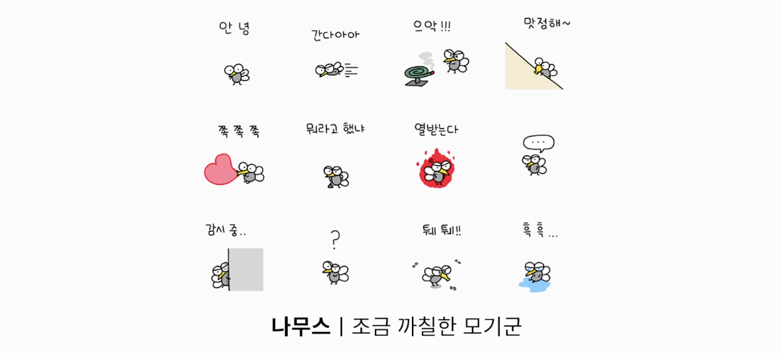 조금 까칠한 모기군은 작은 캐릭터가 한마리만 등장하는 이모티콘이다.