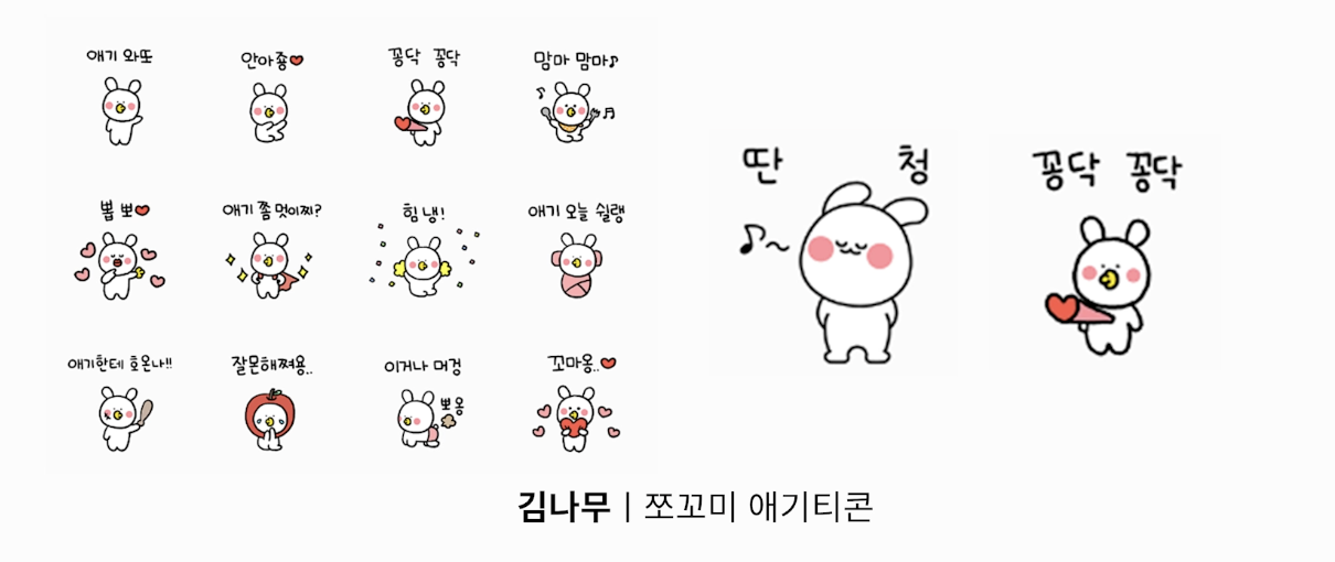나노토끼와 다르게 텍스트도 넣어서 어떤 상황인지 이해하기도 쉽다.