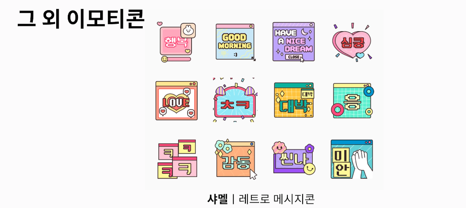 샤멜 작가님의 ‘레트로 메시지콘’이라는 이모티콘인데 컴퓨터 안의 창처럼 생긴