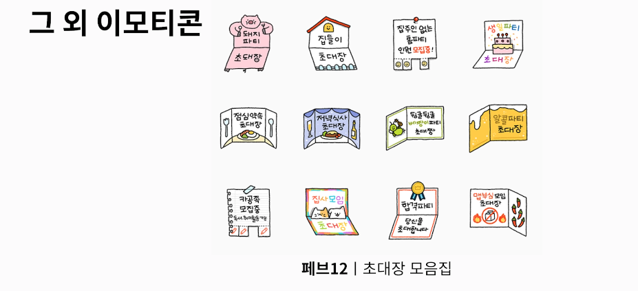 ‘초대장 모음집’인데 초대장 컨셉에 맞게 모든 이모티콘이 초대장 모양으로 생겼고