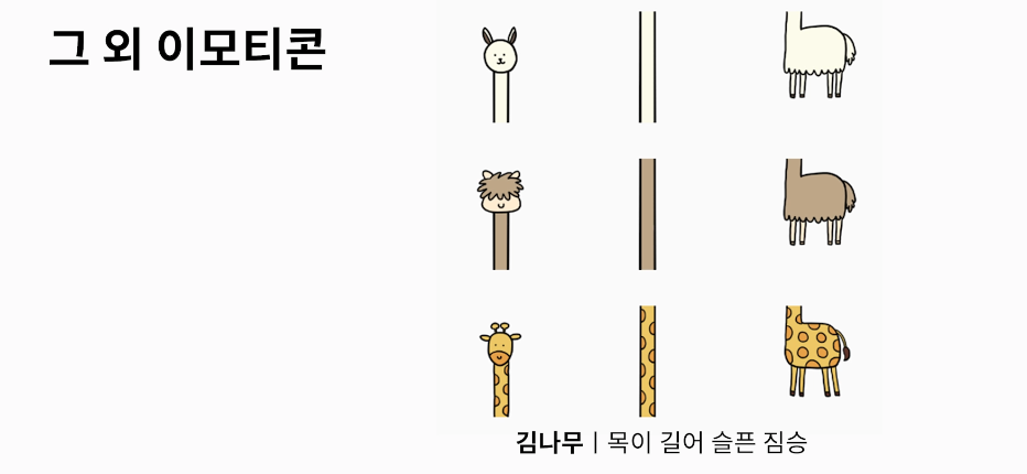 ‘목이 길어 슬픈 짐승’ 이모티콘은 하나의 동물이 세개의 이모티콘으로 나누어져 있어서 3개의