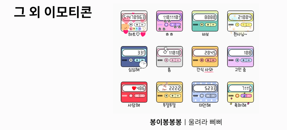 ‘울려라 삐삐’는 제목처럼 삐삐컨셉의 이모티콘이다. 번호만 보낼 수 있기때문에 번호로 내가
