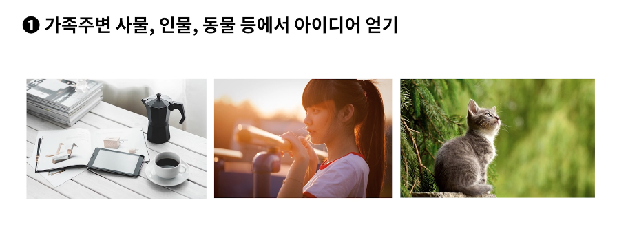 사람마다 다르겠지만 김나무 작가님의 경우, 책상에 가만히 앉아 있는다고 해서 아이디어가 나오는것은 아니라고 하신다.