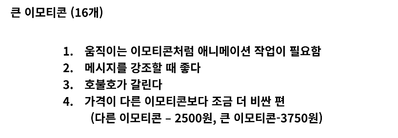 대화창에서 메시지를 강조하고 싶을때 많이 쓴다. 큰 이모티콘은