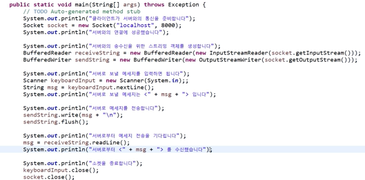 통신용 소켓을 생성하고 접속 요청을 한다. (IP주소와 port번호가 필요)