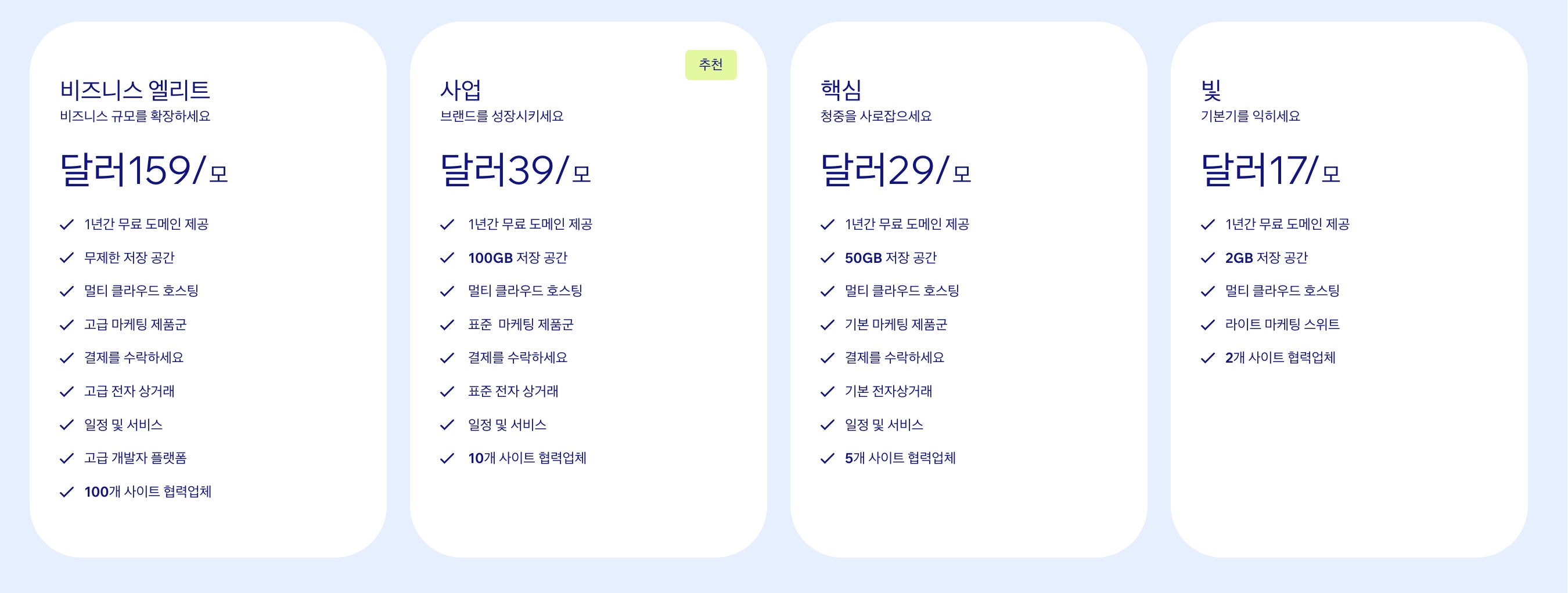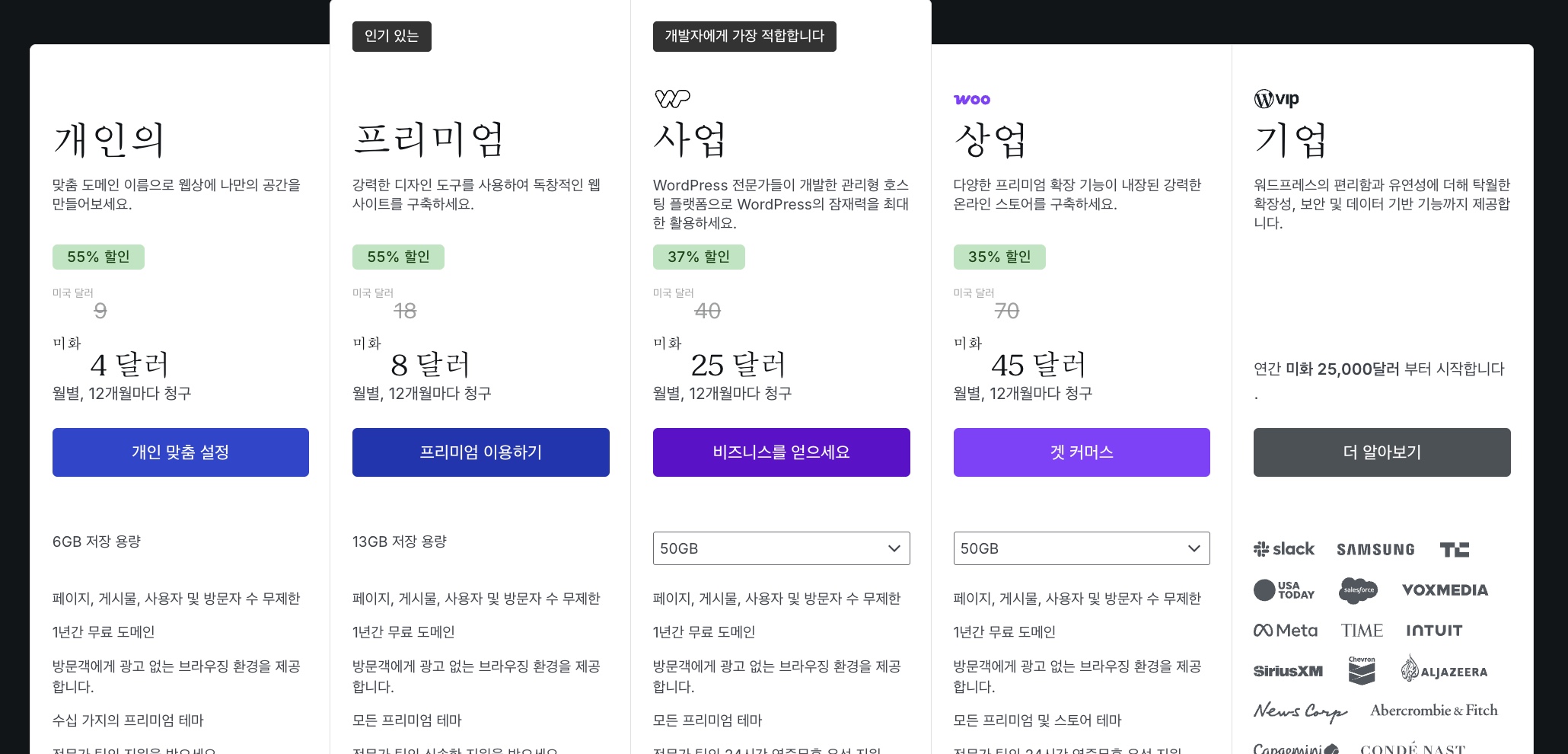 이 요금표는 워드프레스.com 으로 SaaS기반일때의 요금제 입니다.