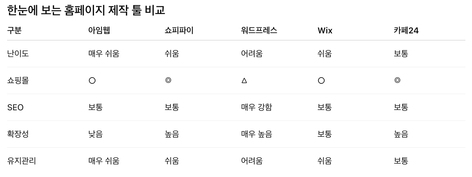 아임웹, 쇼피파이, 워드프레스, Wix, 카페24....이름은 많이 들어봤지만,